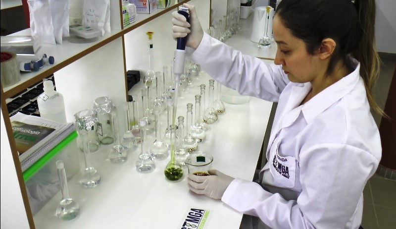 En la foto, Sofia Parada, licenciada en nutrición, doctorando en tecnología de los alimentos, analiza muestras determinando contenido aparente de amilosa en muestras de arroz.