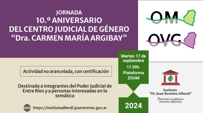 Las inscripciones se realizan de manera online, en https://institutoalberdi.jusentrerios.gov.ar/events/jornada-10-o-aniversario-del-centro-judicial-de-genero-dra-carmen-maria-argibay/
