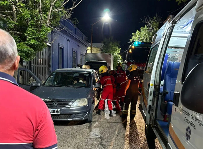 Ante la emergencia, acudieron al lugar los Bomberos Voluntarios de Concepción del Uruguay, quienes realizaron maniobras de corte y expansión para liberar a la víctima de manera segura.