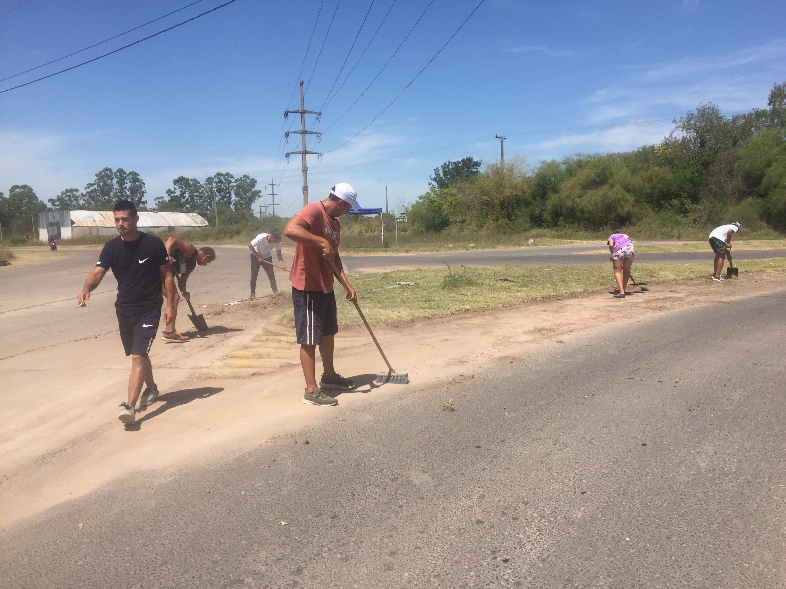 En el marco de la campaña Un verano sin drogas, los residentes en la asociación civil Del Prado, comunidad terapéutica hermana de El Edén, trabajan en la curva del tránsito pesado, situada unos metros hacia el sur de la planta de Fepasa.