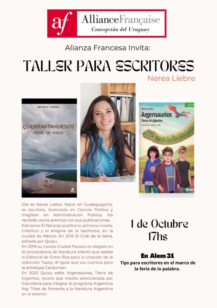 «Taller para escritores» será dictado por Nerea Liebre, quien nació en Gualeguaychú, es escritora, Licenciada en Ciencias Políticas y Magíster en Administración Pública.