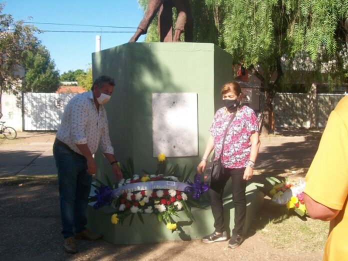 El homenaje consistió en la lectura de las salutaciones recibidas, entre ellas la enviada por el Concejo Deliberante, y el depósito de dos ofrendas forales: una en representación de la Regional de la CGT, colocada por Teresa Benítez y Mario López; y la otra, por la Municipalidad de Concepción del Uruguay, ubicada por Martín Oliva, Ricardo Vales y Yari Seyler.