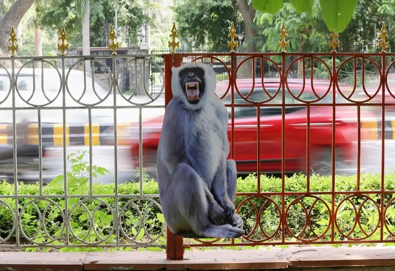 La figura de un langur, exhibiendo sus amenazantes colmillos, parece una extraña decoración de bienvenida en la reja de un hotel en Nueva Delhi. Imágenes a escala 1 a 1 de este primate han sido colocadas por las autoridades de la India en las calles, embajadas, edificios y hoteles de lujo cercanos al lugar donde se desarrollará la cumbre del G20, el 9 y 10 de septiembre. Los langures son una especie agresiva que atemoriza a otros monos más chicos que causan estragos en las áreas verdes de la capital de la India. Para evitar que los invasores se coman los adornos florales colocados para el encuentro, además de estos carteles “espantamonos”, también se ha contratado a una treintena de personas capacitadas para imitar el sonido de los monos langur. Se espera que los aullidos contribuyan a una simulación más realista de los carteles y mantengan a raya a los macacos, lo más lejos posible de los jefes de Estado.