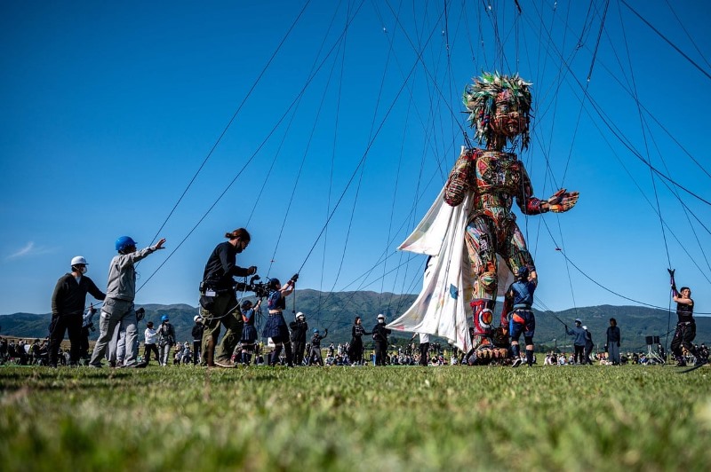 Los artistas controlan a Mocco, un títere gigante que durante mayo, junio y julio recorrerá tres prefecturas en la región de Tohoku. Diez años después del Gran Terremoto de Japón, que provocó un tsunami, destruyó una planta de energía nuclear y mató 15.899 personas, la marioneta inició su viaje hacia Tokio. Su periplo servirá para captar el interés de la gente y sumar más apoyo para la reconstrucción.