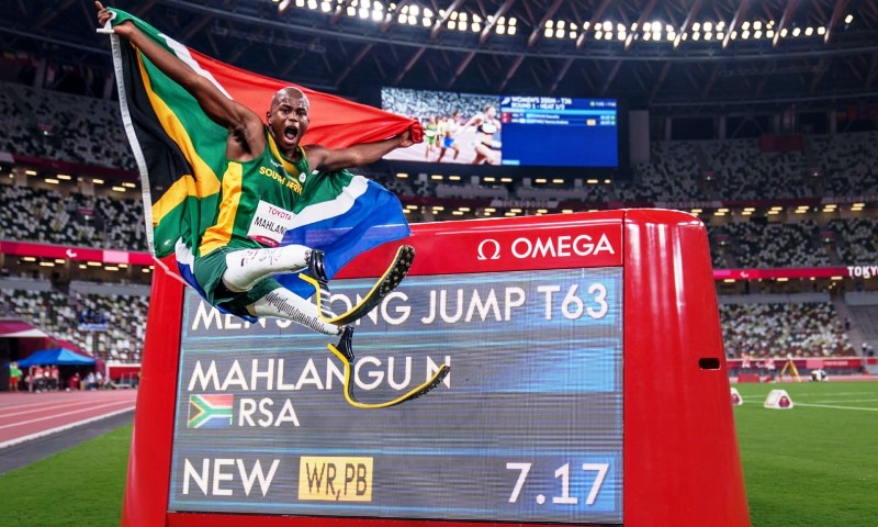 Mahlangu nació con hemimelia, una condición que impide que la parte inferior de la pierna se desarrolle.