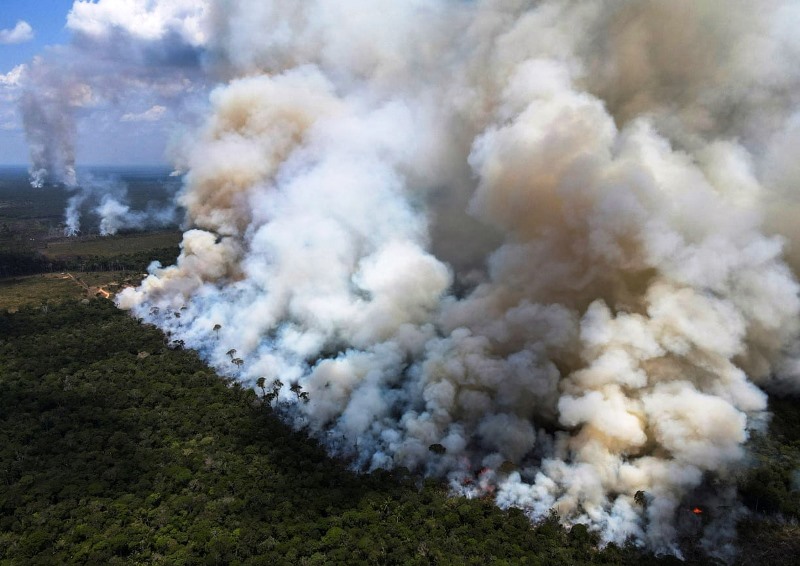 El humo de la vegetación en llamas se eleva en la selva amazónica brasileña cerca de la carretera Transamazónica, en el estado de Amazonas. Según datos revelados por el Instituto Nacional de Investigación Espacial (Inpe), los focos de incendios en esa zona del país han superado los 2.300 en lo que va del año, su peor cifra desde 2007. Pero no es sólo la cantidad de los incendios lo que preocupa a la organización gubernamental, a los ambientalistas y a los pobladores locales, sino también la superficie afectada. Según un estudio de la Ong, MapBiomas, una quinta parte de Brasil (19,6% o 1.672.142 km2) registró un incendio en los últimos 35 años. Los datos se obtuvieron gracias a imágenes satelitales del período entre 1985 y 2021. El informe reveló que el fuego ataca anualmente al 1,8% del área total de Brasil (150.957 km2), lo que equivale a una superficie mayor a la de Grecia o Nicaragua. El Amazonas es la selva tropical más grande del mundo y produce el 20% del oxígeno del planeta. Y a partir de septiembre, la sequías estacionales solo empeoran todo.