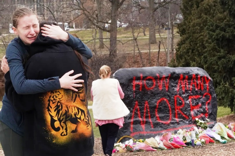 Estudiantes de la Universidad Estatal de Michigan, en Lansing (EE.UU.) lloran junto a un monumento improvisado en el ingreso del enorme campus universitario que reza: “¿Cuántos más?”. El lunes a la noche un hombre de 43 años armado abrió fuego en ese lugar, matando a tres estudiantes e hiriendo a varios más, cinco de los cuales se encuentran en estado crítico. Hasta el ayer, el Gun Violence Archive había contabilizado 67 tiroteos masivos en Estados Unidos este año. El archivo, una organización de investigación sin fines de lucro, define un tiroteo masivo como aquel en el que mueren o resultan heridas al menos cuatro personas. El presunto autor del tiroteo, quien murió de una herida de bala autoinfligida, no tenía relación con la universidad. Algunos de sus 50.000 alumnos revivieron el trauma de hace 14 meses cuando otro hombre disparó en una escuela secundaria muy cerca de Lansing a la que asistían.