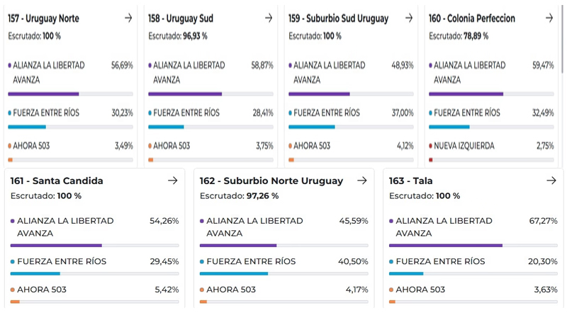 * Uruguay Norte: LLA 56,69% | Fuerza Entre Ríos 30,23% | Ahora 503 3,49%