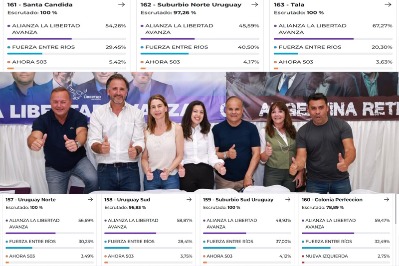 * Uruguay Norte: LLA 56,69% | Fuerza Entre Ríos 30,23% | Ahora 503 3,49%