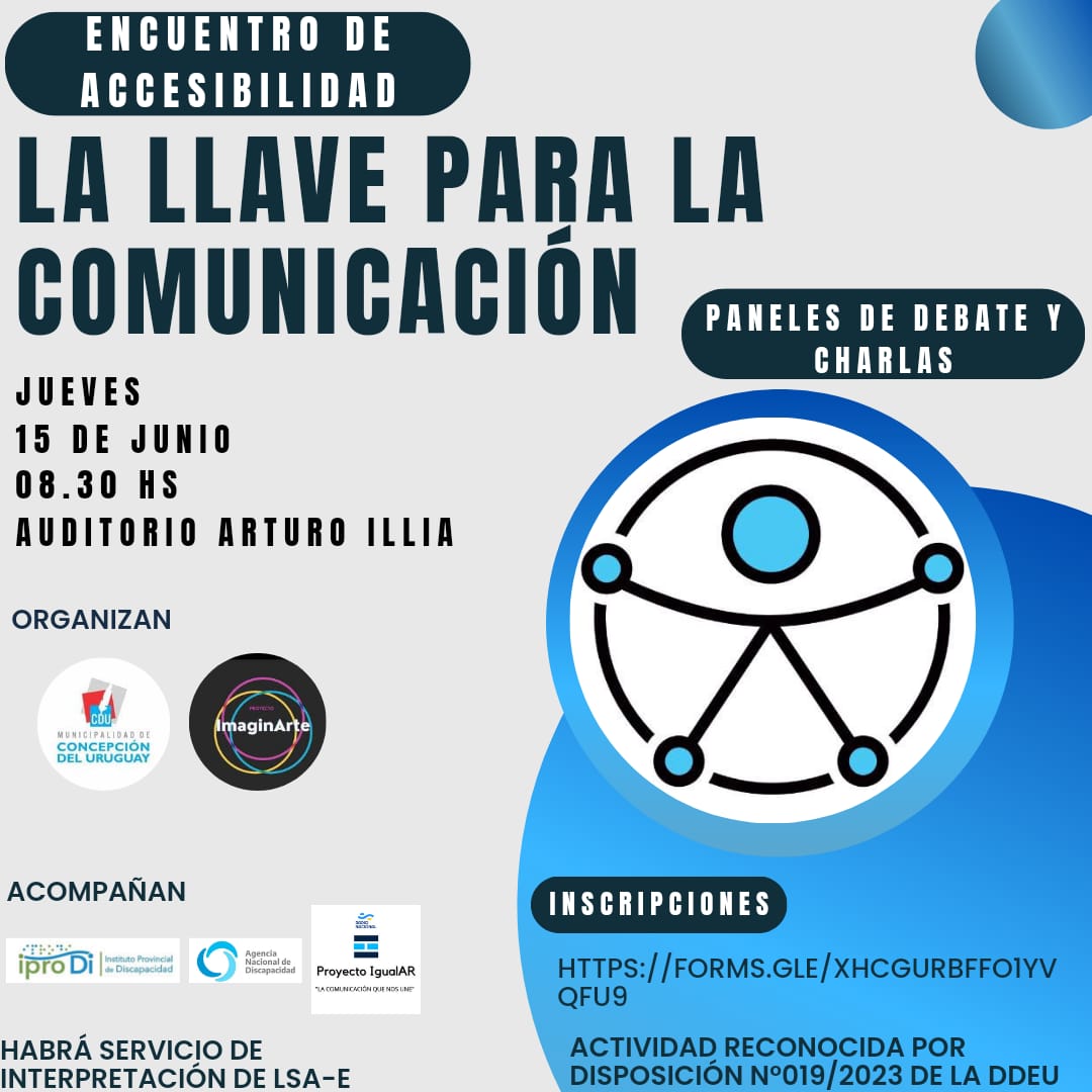 El Encuentro se denomina «Accesibilidad: la llave para la comunicación». Este evento cuenta con el acompañamiento de destacadas instituciones, entre ellas, la ANDIS (Agencia Nacional de Discapacidad); IPRODI (Instituto Provincial de Discapacidad); el Proyecto IgualAR de Radio Nacional y la Municipalidad de Concepción del Uruguay.