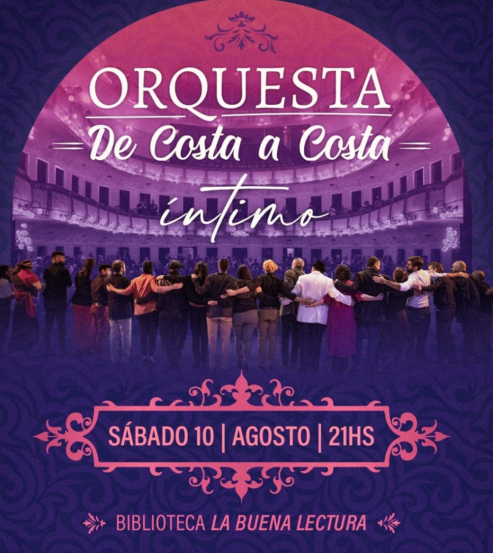 El sábado 10 de agosto, a las 21:00, se presentará la Orquesta De Costa a Costa en la Biblioteca La Buena Lectura.
