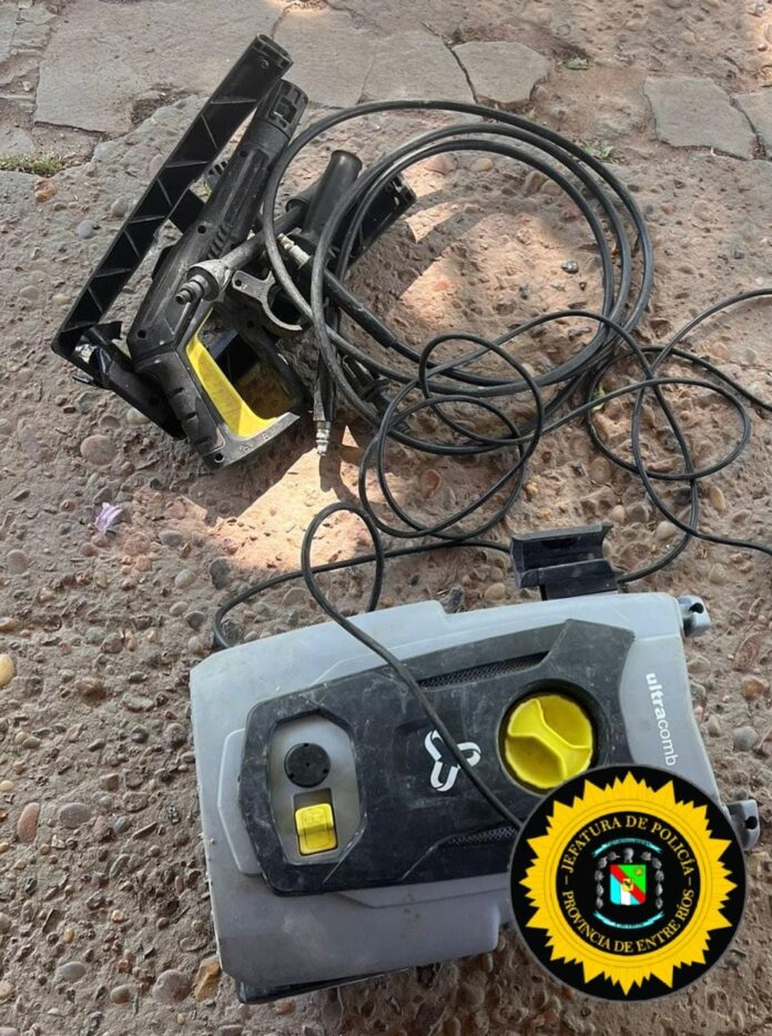 Horas más tarde, un vecino de 29 años se presentó en la Comisaría Tercera para denunciar el robo de una hidrolavadora mientras trabajaba en la zona de Leguizamón e Irigoyen. Al verificar el artefacto secuestrado, el denunciante reconoció el equipo como propio.