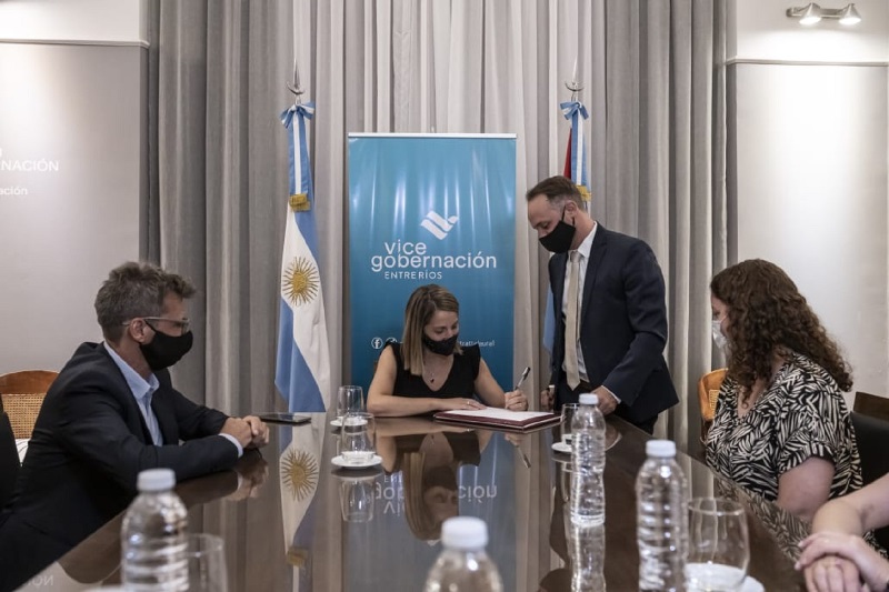 La vicegobernadora Laura Stratta encabezó este jueves la firma del contrato para la construcción de un Salón de Usos Múltiples en Villa del Rosario. Se trata de obra complementaria del desarrollo del sistema de riego para pequeños productores citrícolas que abastece a 91 explotaciones.