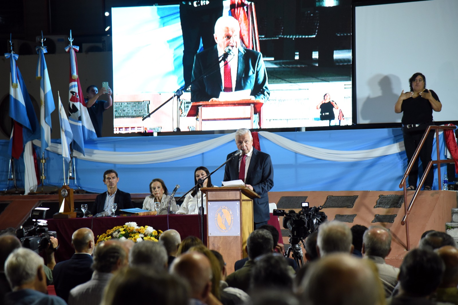 Tras la rubricación del acta de traspaso entre el intendente saliente, Martín Oliva, y José Eduardo Lauritto, frente a la  escribana de la Municipalidad, Teresita Alzamora, se formalizó la asunción de las autoridades.