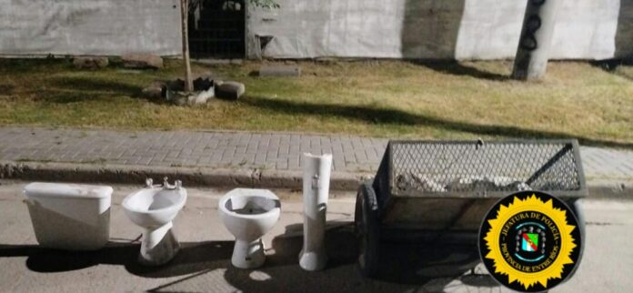Según fuentes policiales, en el interior del carro se encontraron diversos efectos: un bidet con grifería, una mochila de inodoro con sistema de carga y descarga de agua y un pie de lavatorio de porcelana blanca.