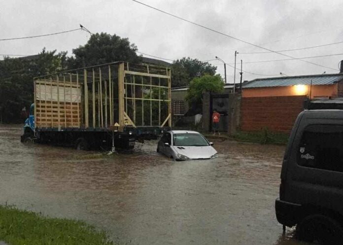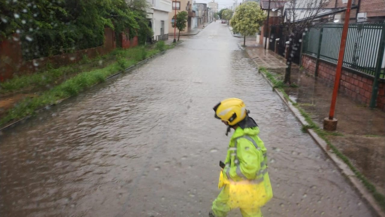 «Se recepciona un llamado que en calle Blvd. Montoneras y Sarmiento había un vehículo atrapado por la correntada con personas en su interior. Sale de inmediato móvil 24 con personal y al arribo se observa que ya habían podido salir.