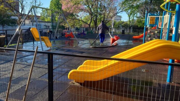 La Municipalidad de Concepción del Uruguay llevó adelante nuevas tareas de limpieza y desinfección en Plaza Urquiza, en el marco de su programa permanente de mantenimiento y cuidado de los espacios públicos.
