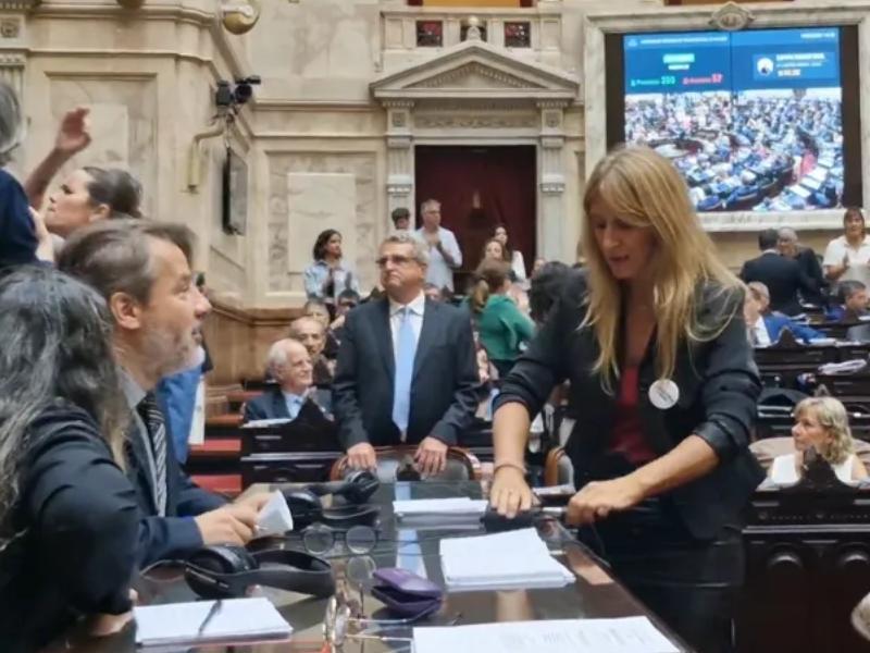El bloque de La Libertad Avanza solicitó formalmente la expulsión de la diputada de Unión por la Patria Florencia Carignano, a quien acusa de «actos de sabotaje ilegales» por desconectar cables del taquígrafo y otros dispositivos técnicos durante la sesión en que se debatió la reforma laboral, afectando el registro oficial.