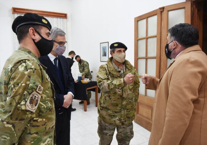 La reunión de trabajo, continuó luego en la propia sede del Batallón, donde la comitiva fue recibida por su jefe, el Teniente Coronel Diego Mariano Margarián donde se intercambiaron planimetrías, características de la obra, del terreno y demás detalles técnicos.