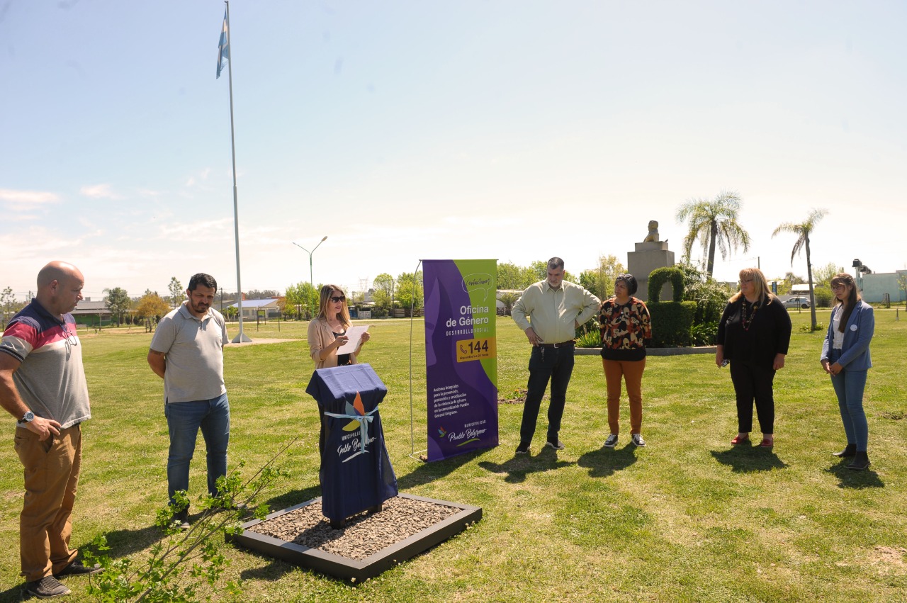 Luego de terminada la jornada, los presentes, encabezados por los padres de Micaela García, plantaron un árbol y descubrieron una placa alusiva en plaza Urquiza en el Nuevo Pueblo General Belgrano.