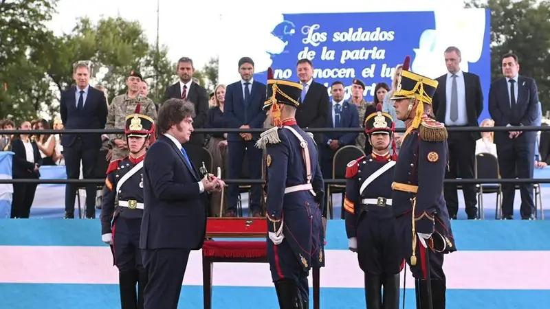Javier Milei encabezó el homenaje por los 213 años de la Batalla de San Lorenzo –a pesar de que en su discurso y en las diversas publicaciones del Gobierno, cometieran la increíble falla al asegurar que se trataba del 123° aniversario– en una acto en dicha ciudad santafesina, y entregó al Cuerpo de Granaderos a Caballo el sable corvo del general José de San Martín. El presidente de la Nación usó esa tribuna para cruzar a la ex mandataria Cristina Kirchner y para intentar vincular su gestión a la gesta sanmartiniana.