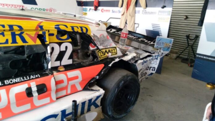 El auto Bonelli quedó muy roto después del toque.