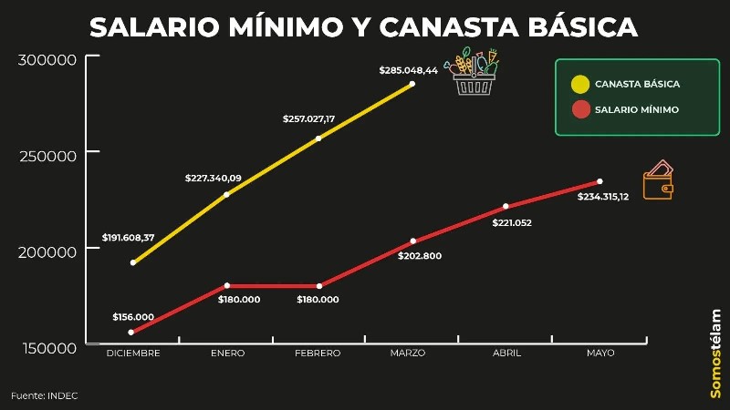 Si se contempla que el valor del salario mínimo era de 156.000 pesos en diciembre, el incremento es de un 50%, un número muy por debajo del índice inflacionario.