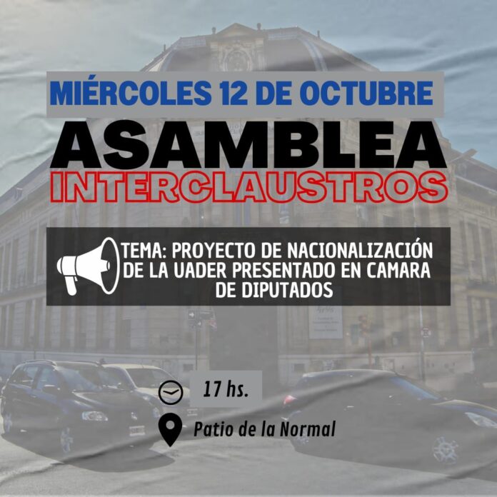 El miércoles 12 de octubre a las 17 la Asamblea Interclaustros se volverá a reunir en el patio de la escuela Normal, se indicó a APF.