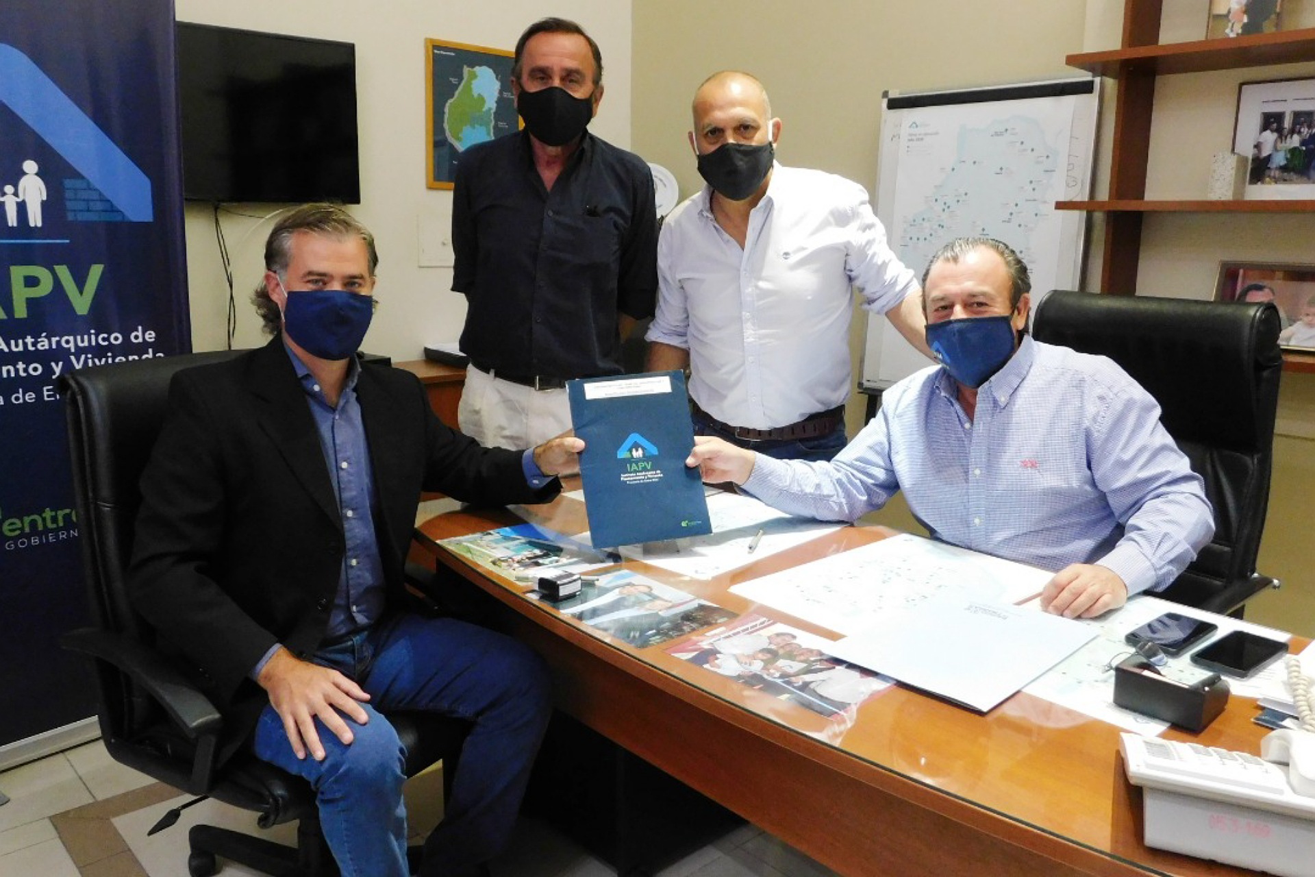 El presidente del Instituto Autárquico de Planeamiento y Vivienda (IAPV), Marcelo Bisogni, llevó adelante la firma de los convenios a través de los cuales la provincia construirá con recursos propios 22 viviendas en Gualeguaychú; 17 en La Paz; 10 en San Gustavo; 10 en Ibicuy; y seis en Colonia Avigdor.