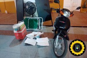 Además de los artículos robados, los efectivos incautaron electrodomésticos nuevos, herramientas y productos de cuidado personal. También fueron hallados una motocicleta Motomel Blitz 110cc, una balanza digital, una caja con proyectiles calibre .22 y un boleto de compra-venta de un vehículo Volkswagen Suran, todos elementos que, según las autoridades, habrían sido adquiridos con el dinero obtenido del robo.
