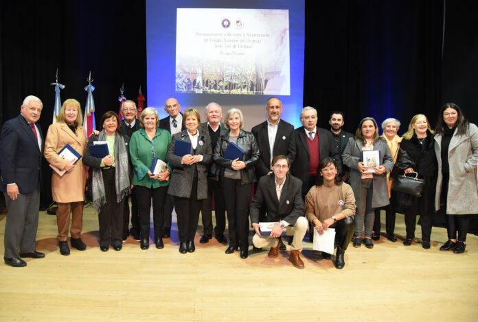 Las plaquetas de reconocimiento fueron para los siguientes docentes que se desempeñaron como rectores: Eduardo Giqueaux, Claudia Musco, María del Carmen Petrone y Celia D’Angelo, además de quien es rector desde 2018, Ramón Cieri.