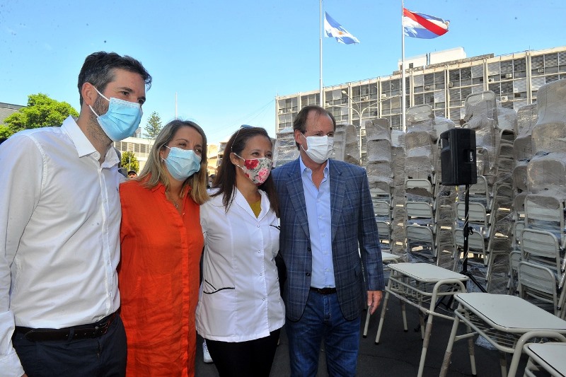 “Queremos que nuestros alumnos puedan tener las condiciones óptimas”, dijo el mandatario al presenciar la adjudicación del nuevo mobiliario para las escuelas del departamento Paraná. Y sostuvo que “en este ciclo lectivo apuntamos a contar con presencialidad plena y a lograr el objetivo de desarrollar 190 días de clases para que se recupere mucho de lo que la virtualidad no pudo conseguir durante la pandemia”.