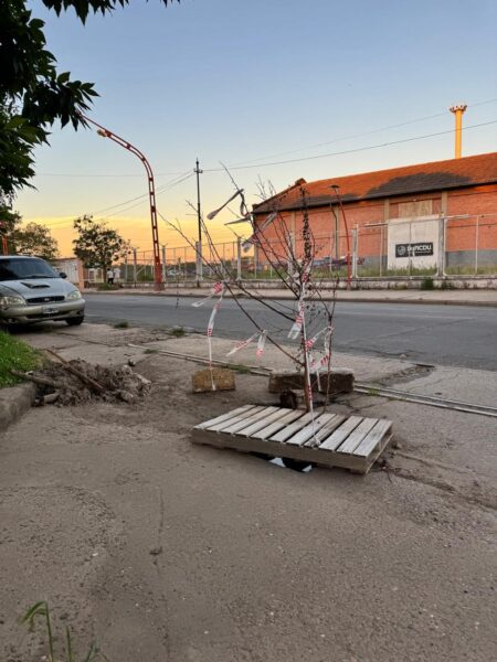 Ante esa situación, fueron los propios vecinos quienes improvisaron una señalización para advertir el peligro. Con ramas, palos y cintas atadas a un pequeño árbol intentaron marcar la presencia del pozo para evitar que alguien sufriera un accidente. Fue una solución precaria, pero necesaria para alertar a quienes pasaban por allí.