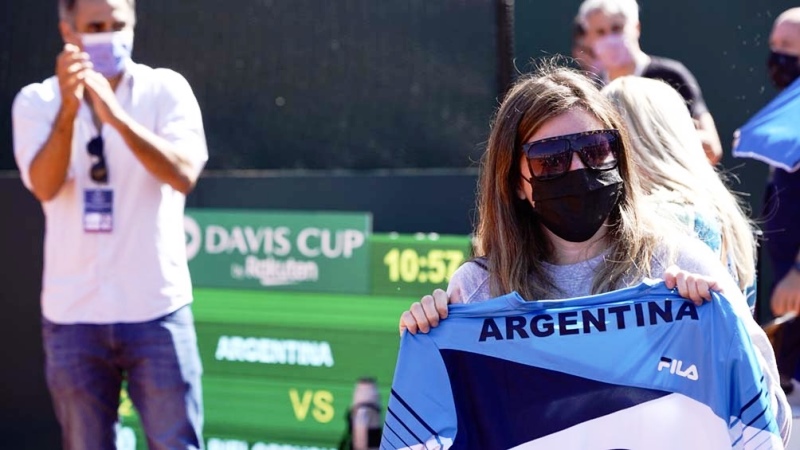 El astro Diego Armando Maradona, fallecido en noviembre del año pasado a los 60 años, recibió ayer un sentido homenaje del equipo de Copa Davis de la Argentina previo al inicio de la serie ante Bielorrusia en el Buenos Aires Lawn Tennis Club.