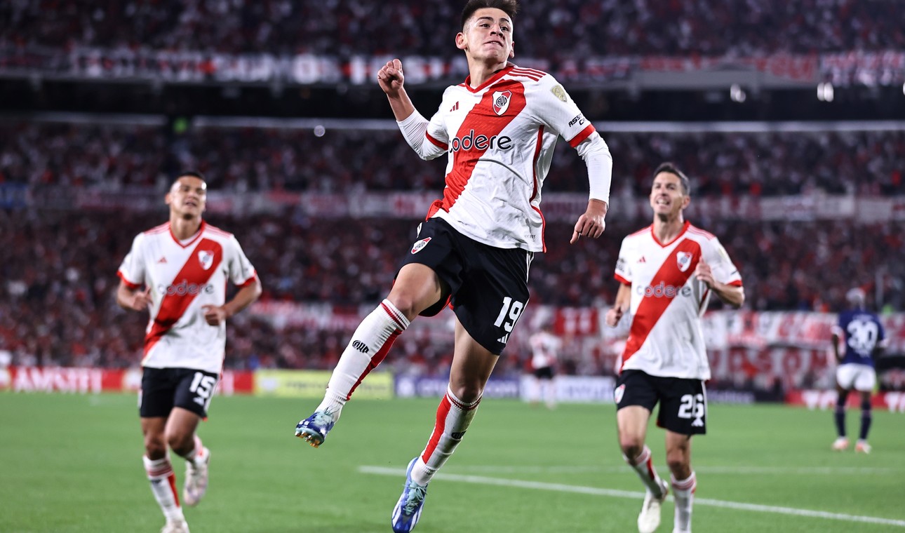 Claudio Echeverri celebra su gol ante Nacional en el Monumental.