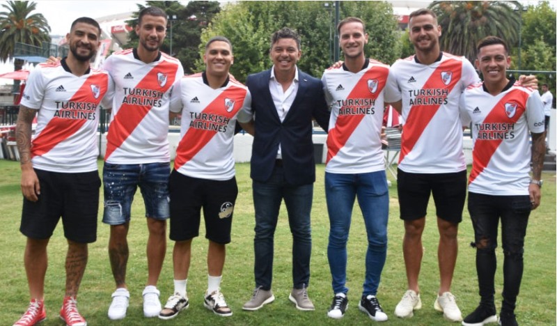 Gallardo estuvo en la presentación de los defensores Leandro González Pirez, Emanuel Mammana, Elías Gómez y Andrés Herrera (no estuvo presente), y los mediocampistas Mauricio Pochettino, Esequiel Barco y el colombiano Juan Fernando Quintero.