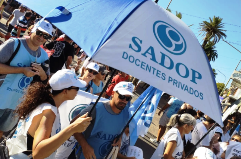 Además, Sadop demandó “una reunión urgente con las autoridad de Trabajo y con la Dirección de Gestión de Educación Privada del CGE, a los efectos de abordar una problemática de hechos de precarización laboral consistentes en despedir a los docentes conminándolos a inscribirse como monotributistas; cambios de horario repentinos e inconsultos, entre otras”.