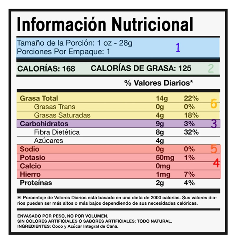 Vean el detalle del tamaño de la porción, la cantidad de grasas que tiene , ojo que algunas son buenas y otras no tanto (trans), los hidratos de carbono, el sodio que es la sal que puede hacer que nuestra presión arterial se eleve, luego el calcio que es bueno para los huesos , las proteínas que en cantidad justa y necesaria son muy buenas. Busquen distintos alimentos y comparen las tablas. y podrán ver cuales son las mas saludables