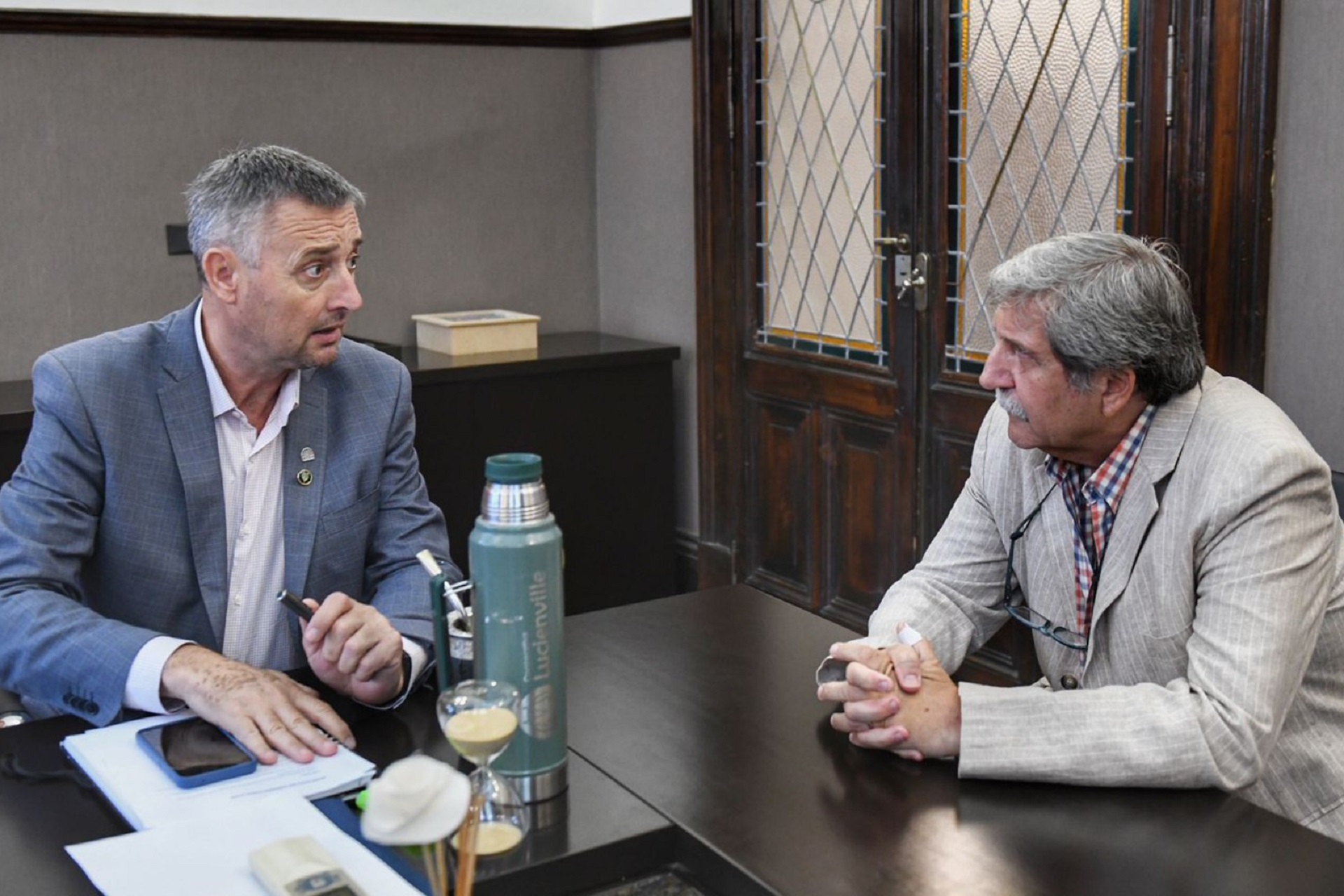 Proyectos de ley que tienen como objetivo mejorar el sistema sanitario fueron tema de la reunión que mantuvieron el ministro de Salud de Entre Ríos, Guillermo Grieve, y el presidente de la Cámara de Diputados de la provincia, Gustavo Hein. Además, compartieron los ejes del Programa Entrerriano de Salud (PES).