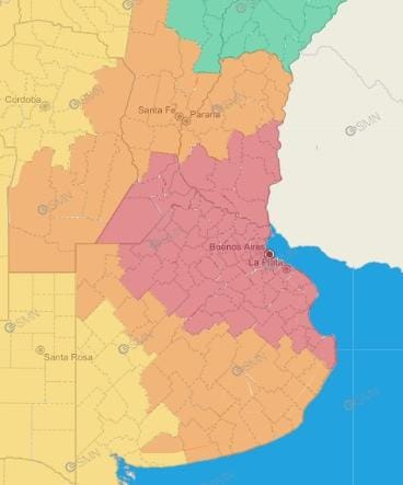 El Servicio Meteorológico Nacional (SMN) informó que para Colón, Gualeguaychú, Islas del Ibicuy, Tala, Concepción del Uruguay, Gualeguay y Victoria esperan fenómenos meteorológicos excepcionales con potencial de provocar emergencias o desastres  Para el resto de Entre Ríos continúa la alerta naranja.