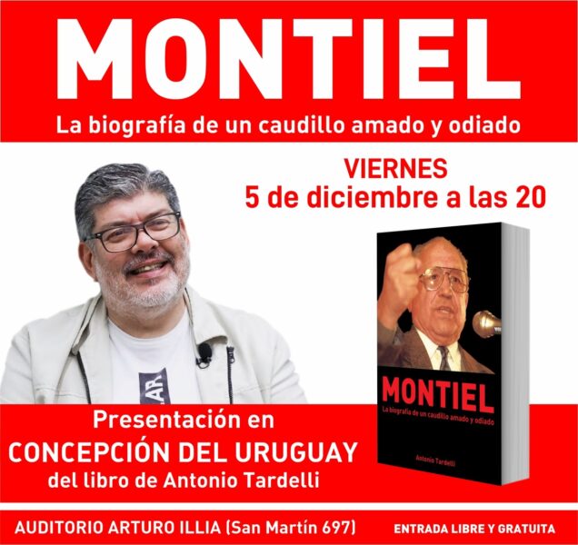 Este viernes, a las 20, en el Auditorio Arturo Illia (San Martín 697), se presentará oficialmente en Concepción del Uruguay el libro “Montiel. La biografía de un caudillo amado y odiado”, escrito por el periodista y escritor Antonio Tardelli. La actividad es con entrada libre y está dirigida a público general, militantes, dirigentes, historiadores y todas las personas interesadas en la política entrerriana.