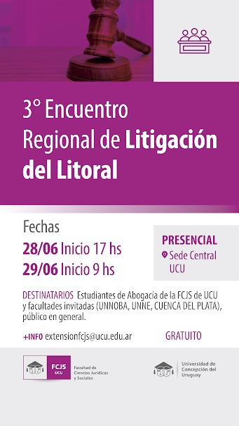 Este viernes a las 17 horas y el sábado a las 9 será la fase presencial del 3er Encuentro Regional de Litigación del Litoral.