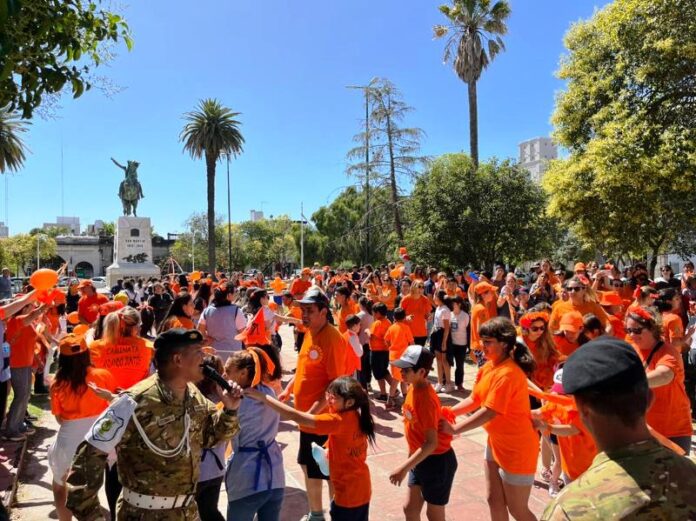 En este 2022, la ‘marea naranja’ -color que identifica a la causa- comenzó desde las puertas de la institución, ubicada en calle San María de Oro 548, frente a la Escuela de Jornada Completa N°110 Doctor General Benjamín Victorica y al Centro de Educación Física (CEF) N°3 Profesor Hugo Mario La Nasa. Y desde allí, y con el acompañamiento del personal de la División Tránsito y del Cuerpo de Bomberos Voluntarios de Concepción del Uruguay más los saludos de los transeúntes, marchó con cánticos y música por el bulevar Hipólito Yrigoyen y calle Urquiza hasta la plaza San Martín, un nuevo escenario para la realización de los festejos (en 2021 fue la parte posterior del establecimiento y anteriormente la plaza General Francisco Ramírez).
