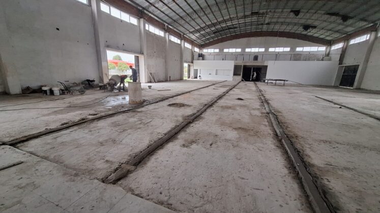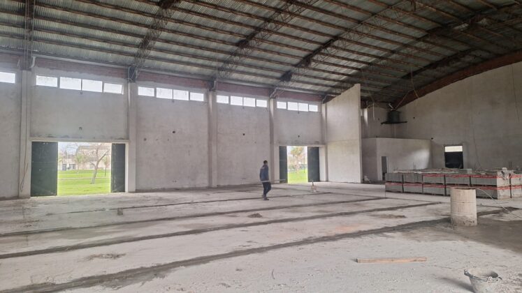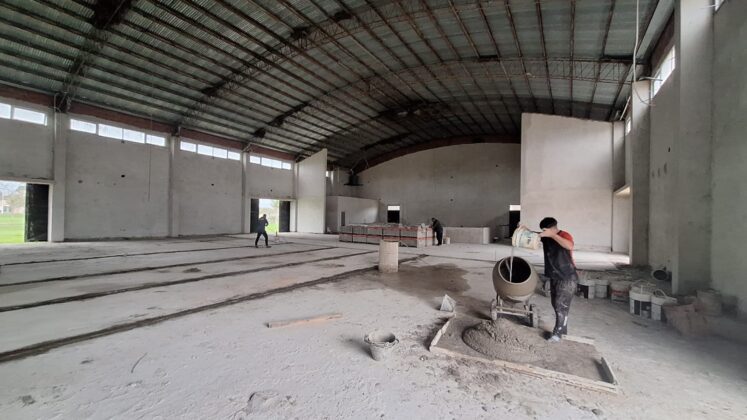La Municipalidad de Caseros retomó las obras en el Salón de Usos Múltiples (SUM). Actualmente se lleva adelante la ejecución de carpeta y la colocación del piso mosaico.