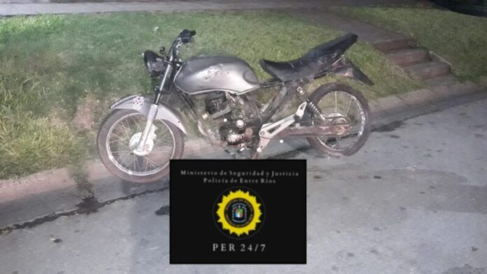 Pasada la medianoche personal policial dependiente de Comisaria Segunda al encontrarse realizando recorridas preventivas por inmediaciones del Bº Reinaldo Bonet,  observa un motovehículo que se encontraba abandonado en la vía pública, presentando el mismo un daño en la llanta trasera.