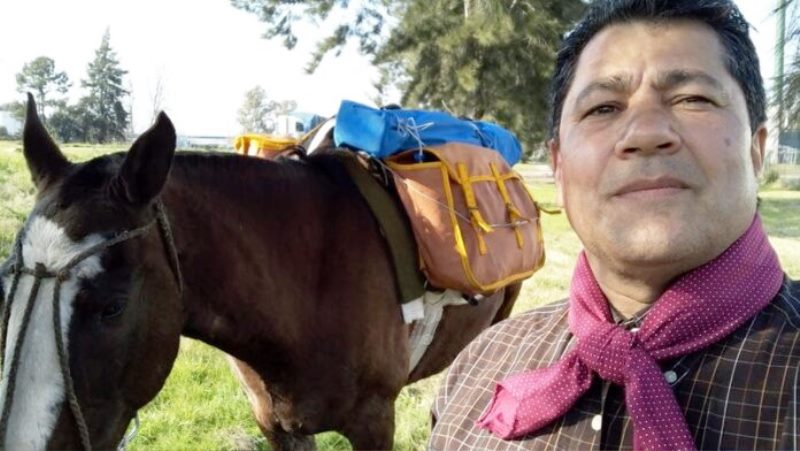 Carlos se transporta a caballo por la Ruta 14, es paisano y Veterano de la Guerra de Malvinas. Según afirmaron, este lunes pasó por Concepción del Uruguay y fue recibido por un grupo de personas que querían felicitarlo por su acción, para posteriormente, continuar su viaje hacia la ciudad correntina de Yapeyú.