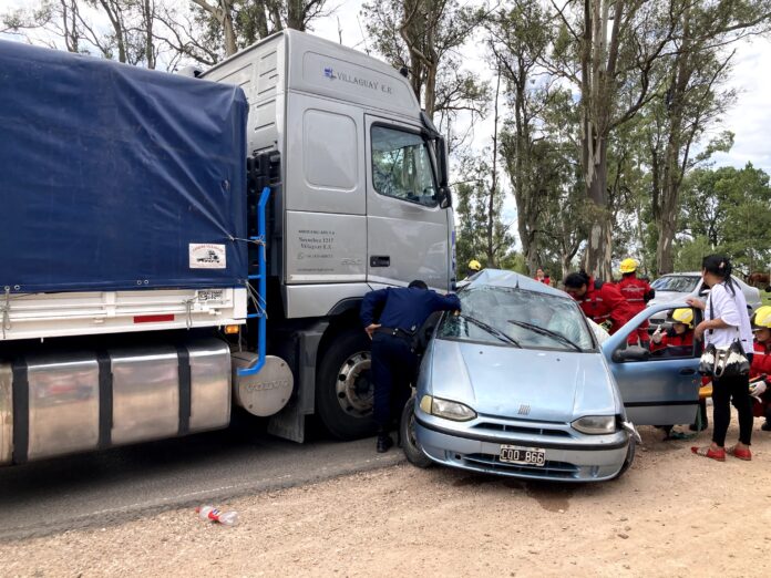 Por causas que se tratan de establecer, un vehículo Fiat Palio, se cruzó de carril y fue impactado en su lateral derecho por el frente de un camión con acoplado. A raíz del siniestro las dos personas que viajaban en el auto sufieron heridas y debieron ser asistida por personal de salud.