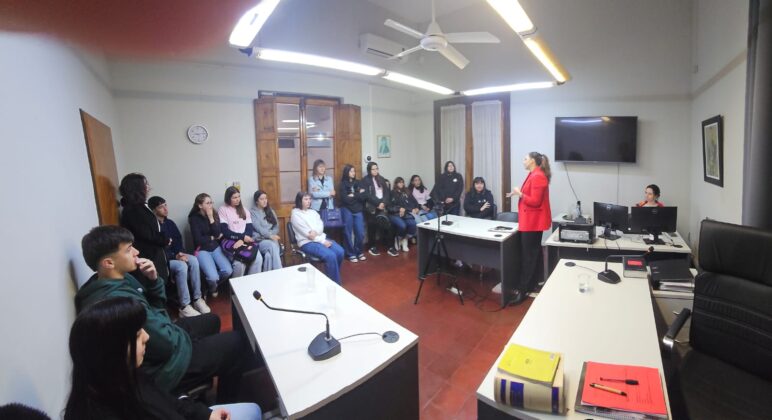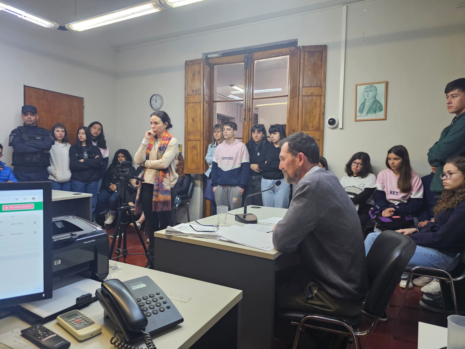 La comitiva, acompañada por la docente Carina Posanzini, fue recibida por diversos integrantes de la magistratura y la función judicial. Entre ellos: la jueza de Garantías, Natalia Céspedes; el fiscal, Juan Sebastián Blanc; la fiscal auxiliar, Micaela Di Pretoro; la defensora auxiliar, Nancy Villagra; la secretaria del Juzgado de Familia, Gladys Bonnin; las integrantes de los Equipos Técnicos Interdisciplinarios (ETI), Alejandra Caorsi, Fermina Calle, Yamina Joannás y Josefina Echaide; y el subdirector de la Oficina de Gestión de Audiencias (OGA), Mariano Guy.