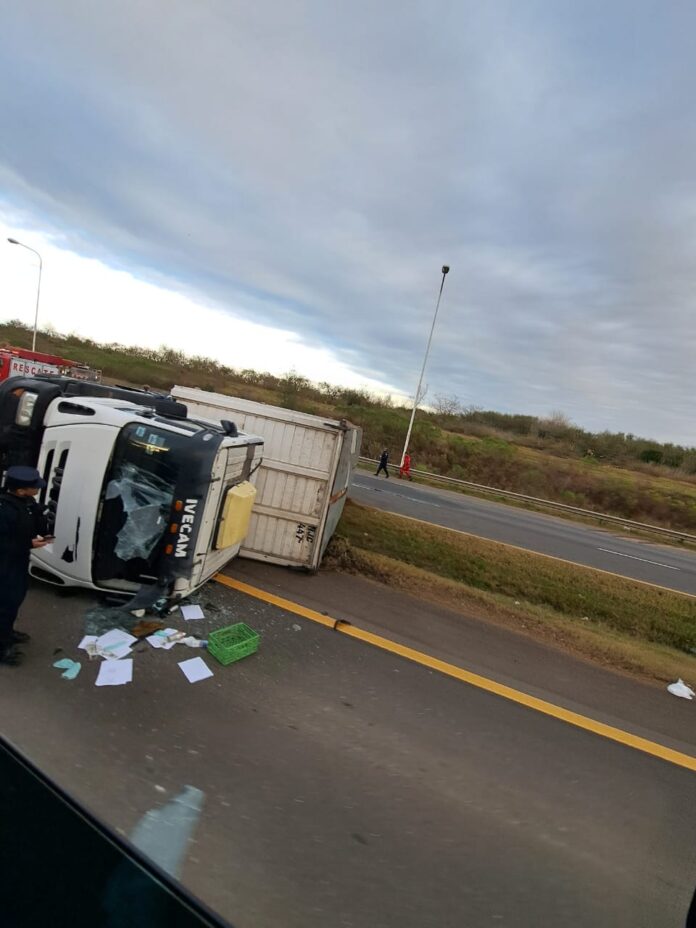 Por motivos que se tratan de establecer, en autovía 14, kilómetro 126, volcó un camión, dieron a conocer desde Prensa de Bomberos Voluntarios de Concepción del Uruguay.