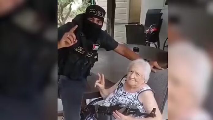 La abuela argentina junto al terrorista de Hamas en su casa del kibutz Nir Oz el 7 de octubre de 2023La abuela argentina junto al terrorista de Hamas en su casa del kibutz Nir Oz el 7 de octubre de 2023